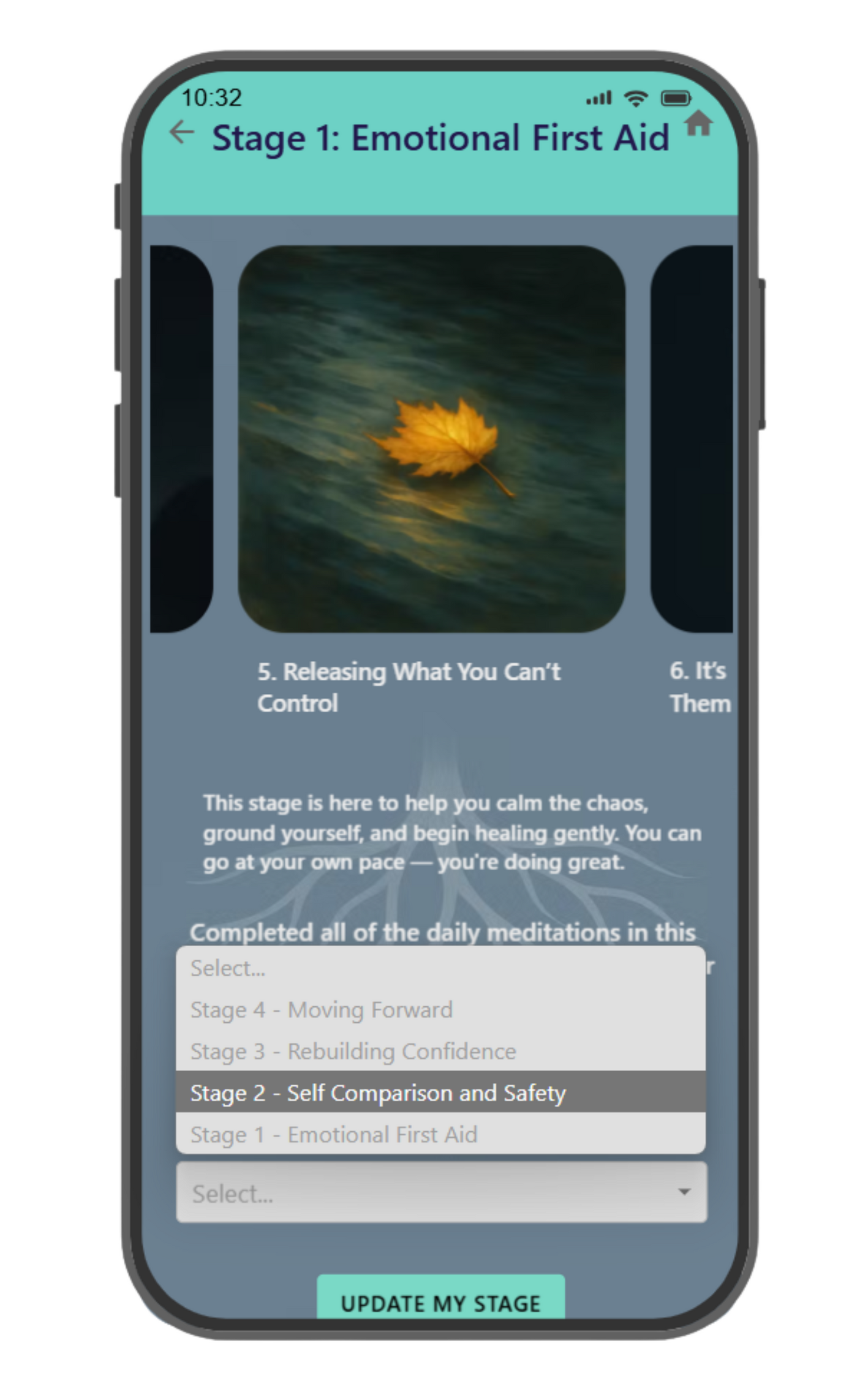From heartbreak to hope, each stage meets you exactly where you are — no guessing what’s next.